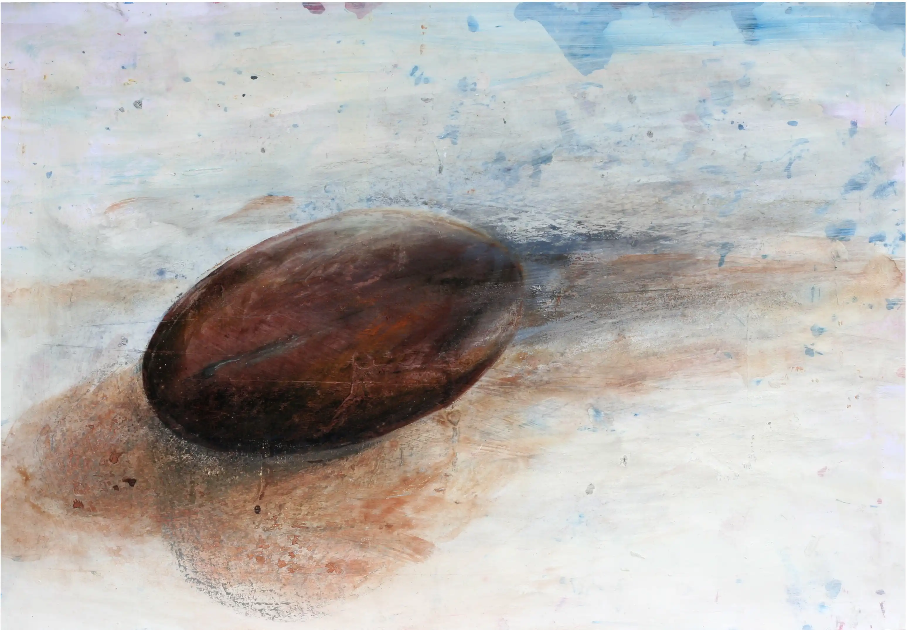 Der Samenkern entfaltet in Acrylfarben seine verborgene Schönheit. Die detaillierte Ausarbeitung offenbart die faszinierende Formensprache dieser kleinen Naturschöpfung.